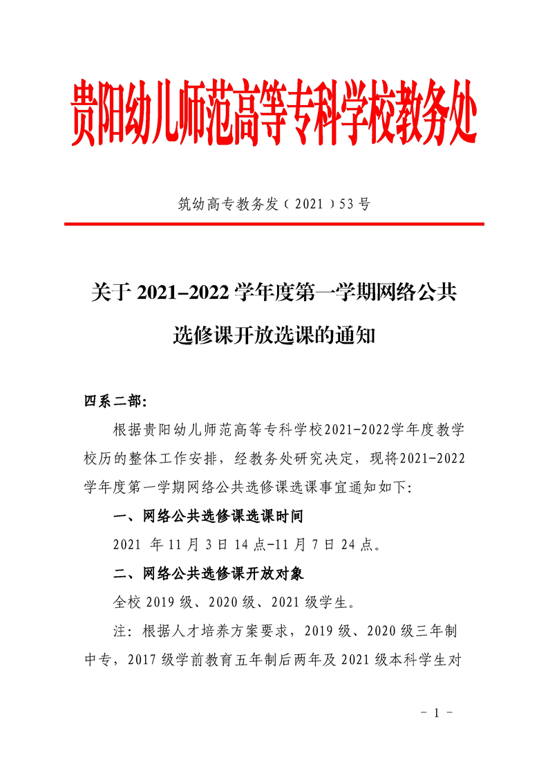 关于2021-2022学年度第一学期网络公共选修课开放选课的通知