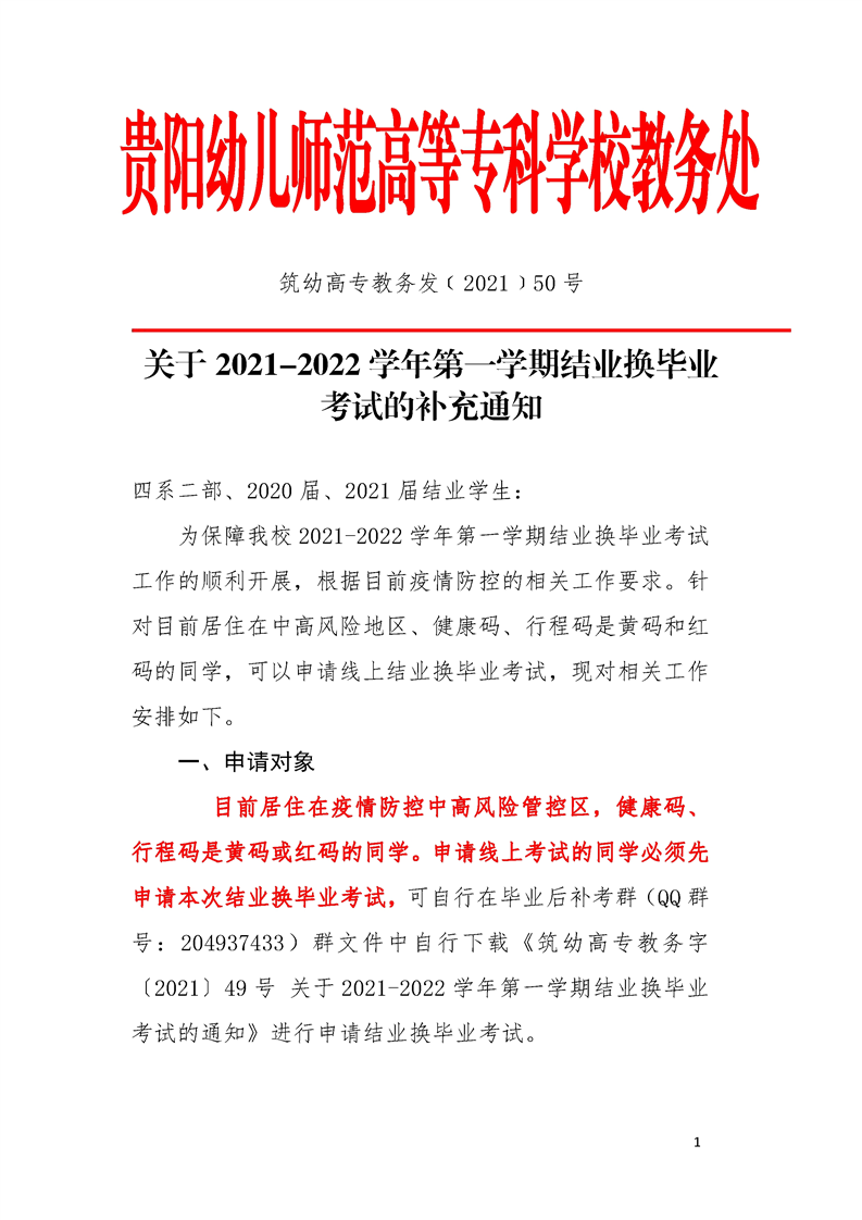 关于2021-2022学年第一学期结业换毕业考试的补充通知.
