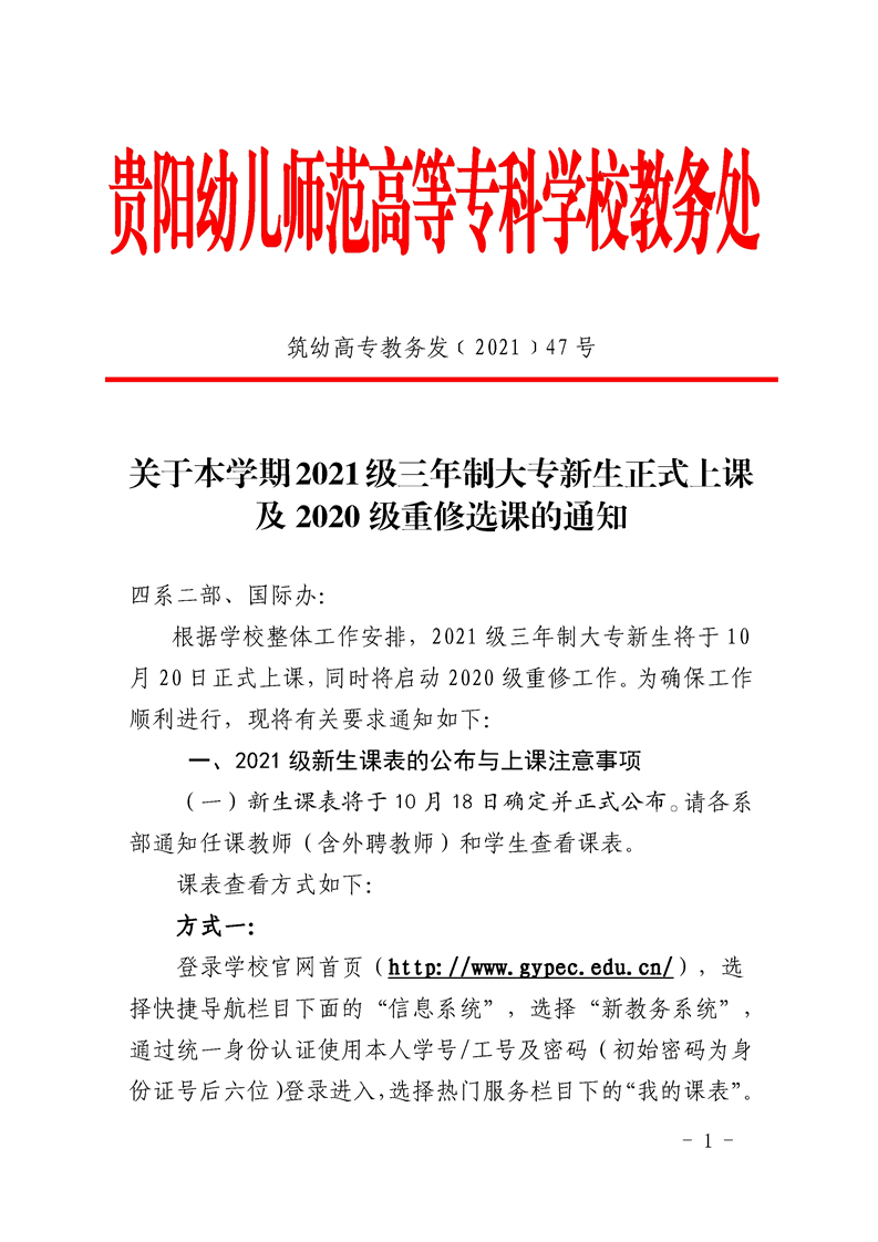 关于本学期2021级三年制大专新生正式上课及2020级重修选课的通知