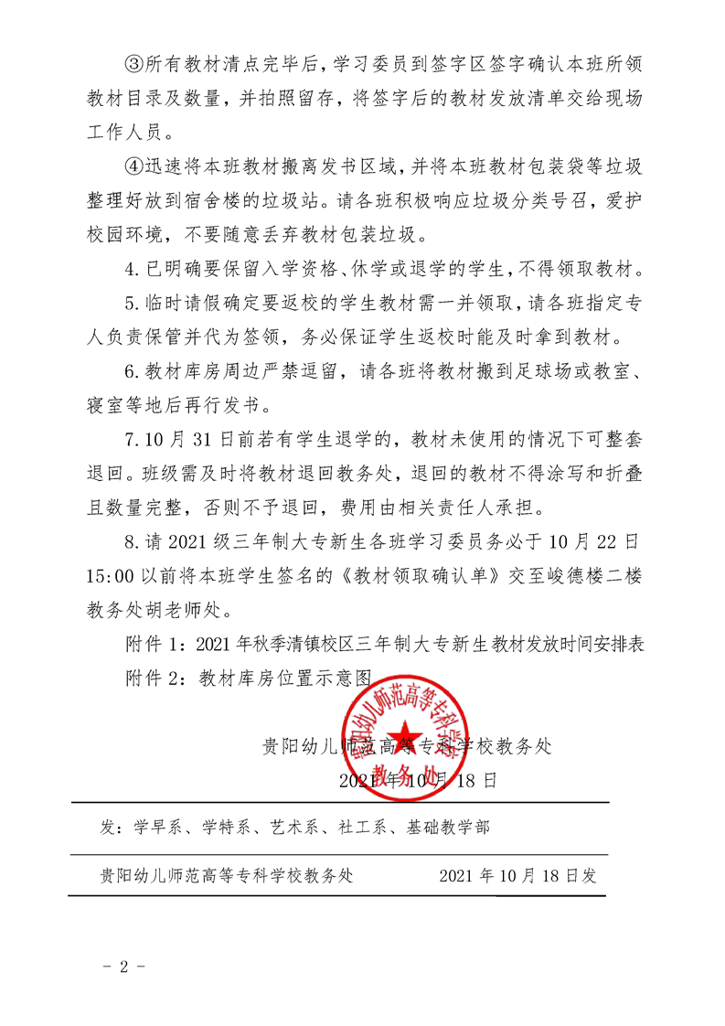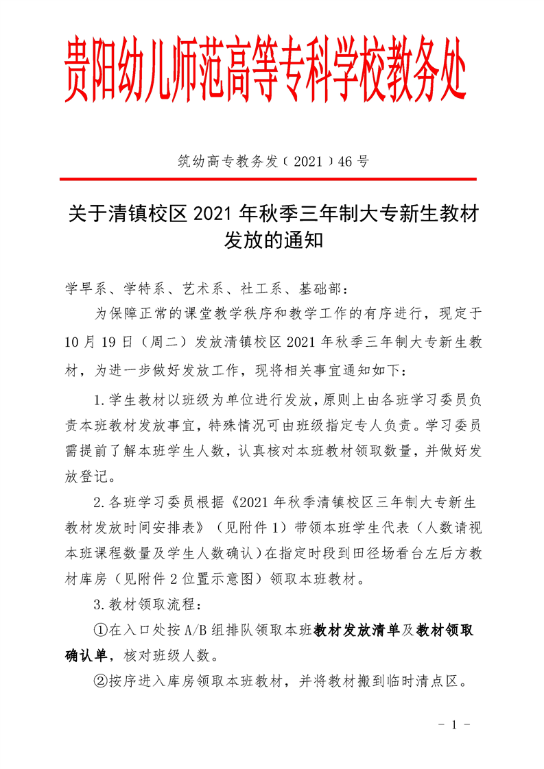 关于清镇校区2021年春季2021级三年制大专学生教材发放的通知