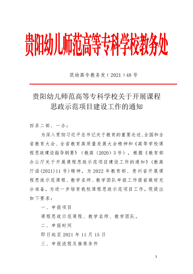 关于贵阳幼儿师范高等专科学校关于开展课程思政示范项目建设工作的通知