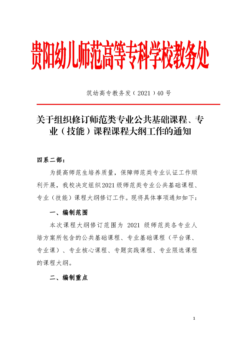 关于组织修订师范类专业公共基础课程、专业(技能)课程课程大纲工作的通知