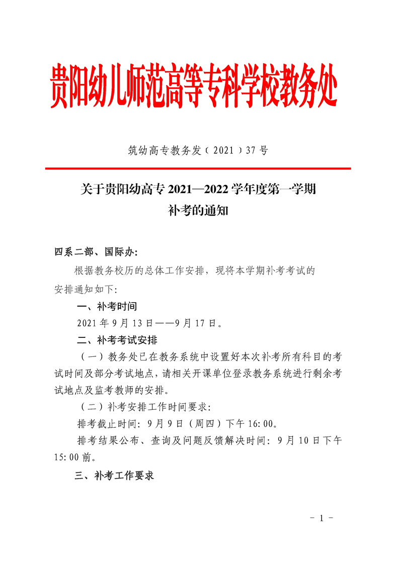 关于贵阳幼高专2021—2022学年第一学期补考安排通知