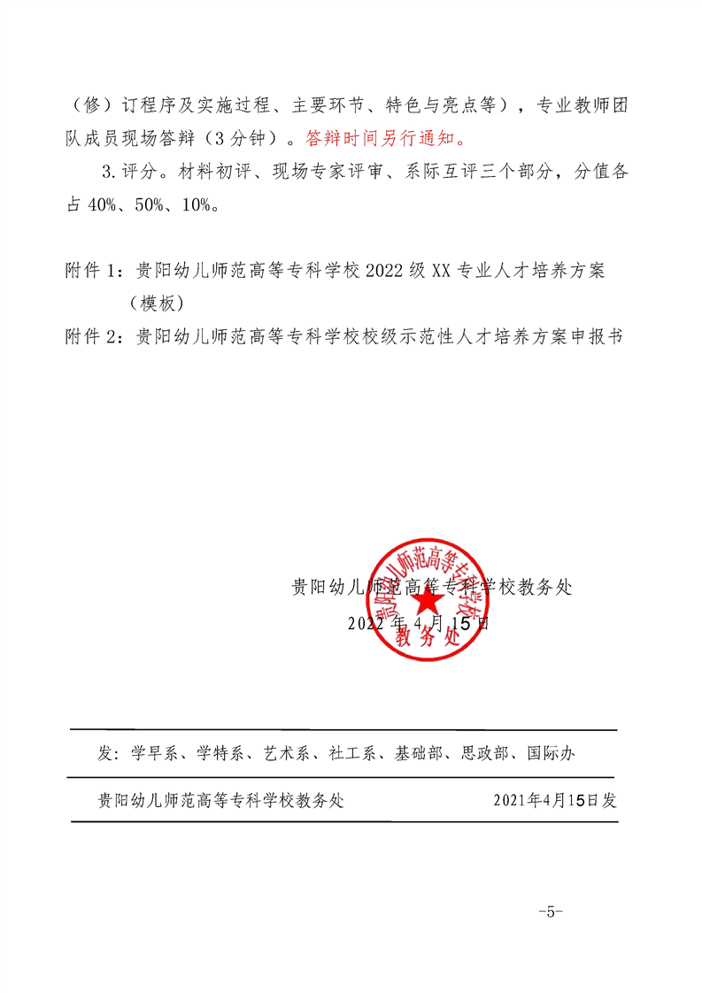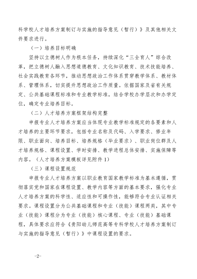 贵阳幼儿师范高等专科学校校级示范人才培养方案申报工作的通知