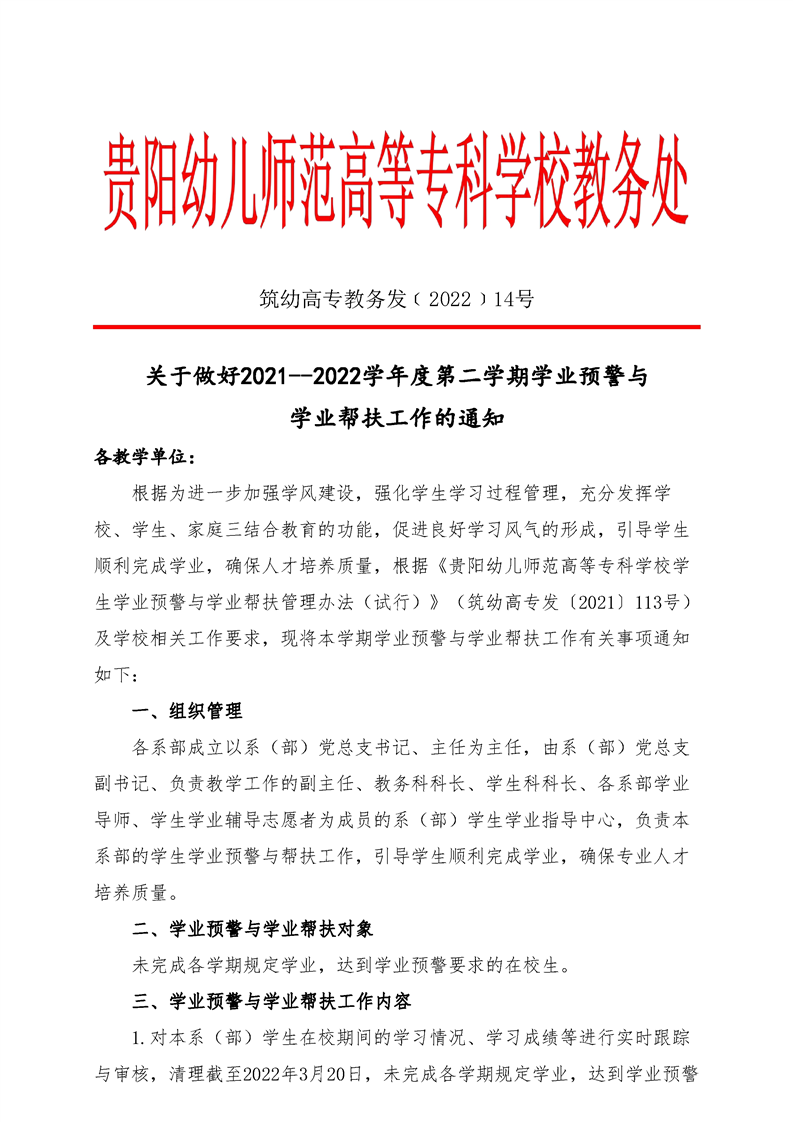 关于做好2021--2022学年度第二学期学业预警与学业帮扶工作的通知