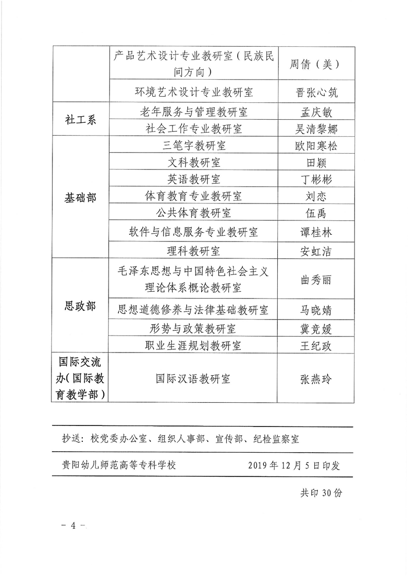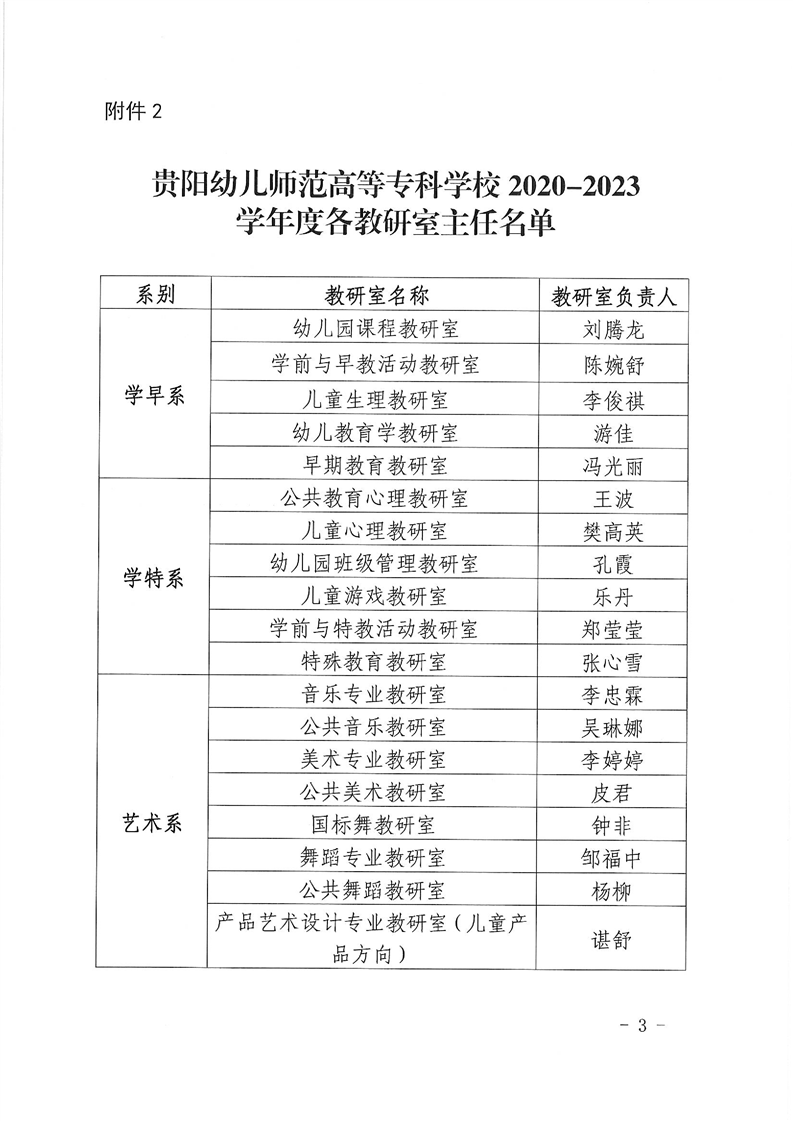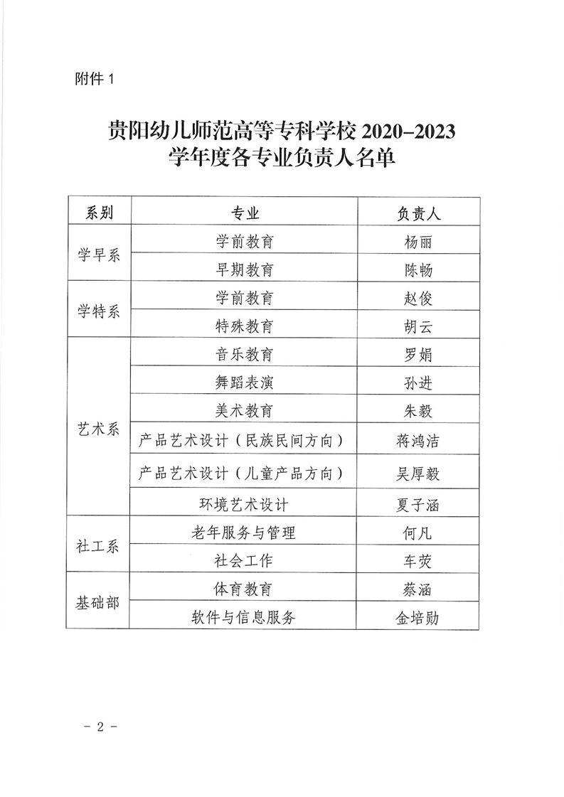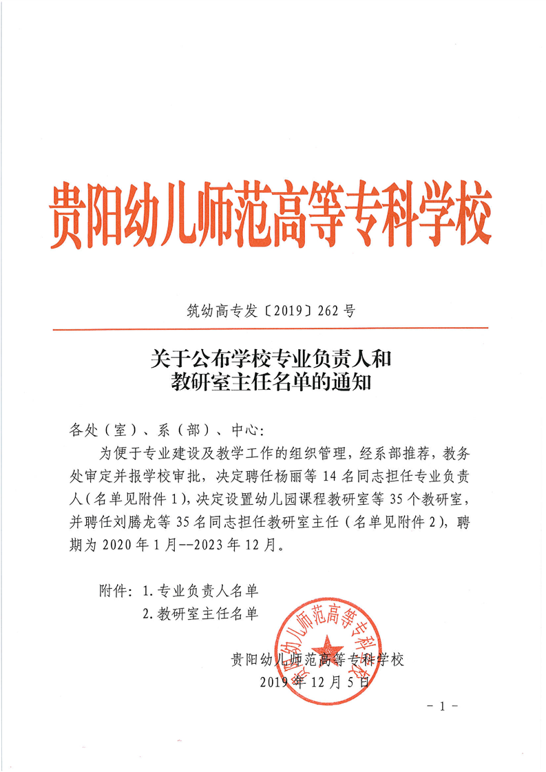 关于公布学校专业负责人和教研室主任名单的通知