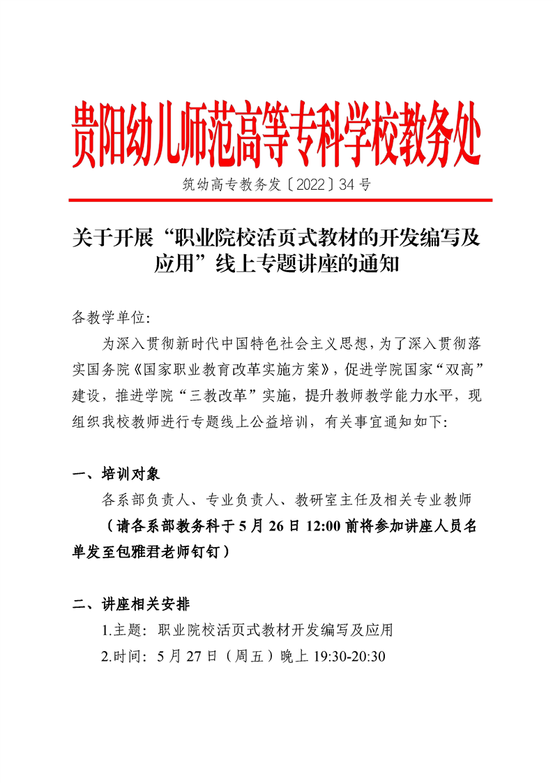 关于开展“职业院校活页式教材的开发编写及应用”线上专题讲座的通知