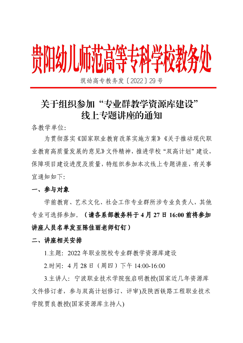 关于开展“专业群教学资源库建设”线上专题讲座的通知