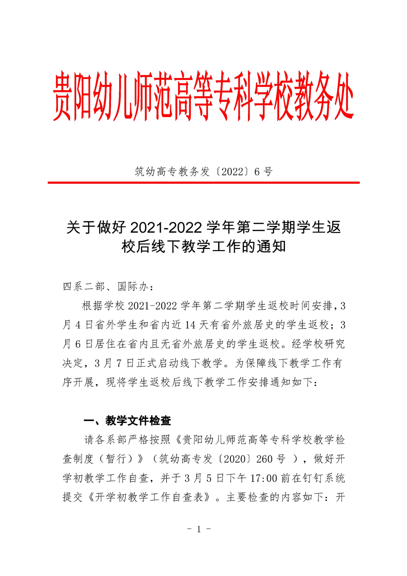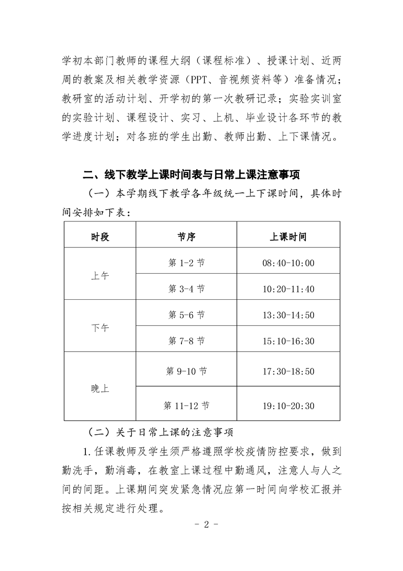 关于做好2021-2022学年第二学期学生返校后线下教学工作的通知