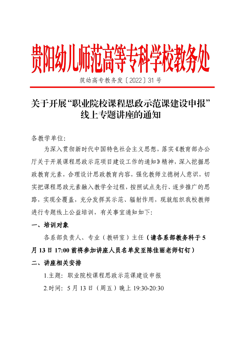 关于开展“职业院校课程思政示范课建设申报”线上专题讲座的通知