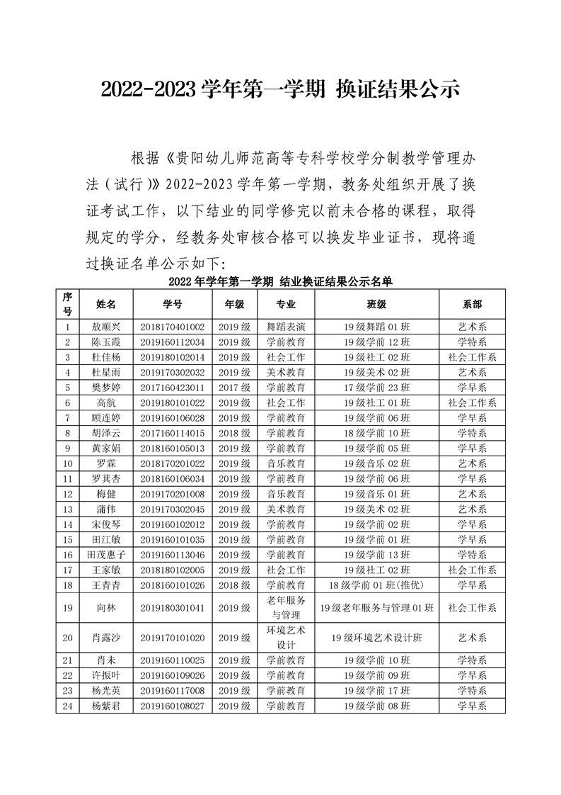 2022年-2023年第一学期换证结果公示