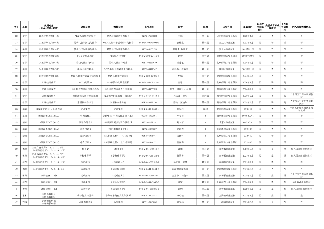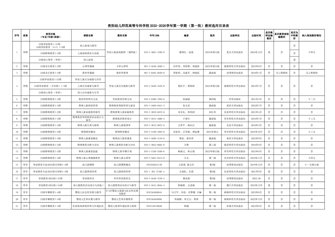 贵阳幼儿师范高等专科学校 2025-2026 学年第一学期(第一批) 教材选用结果公示
