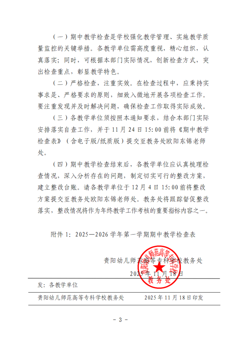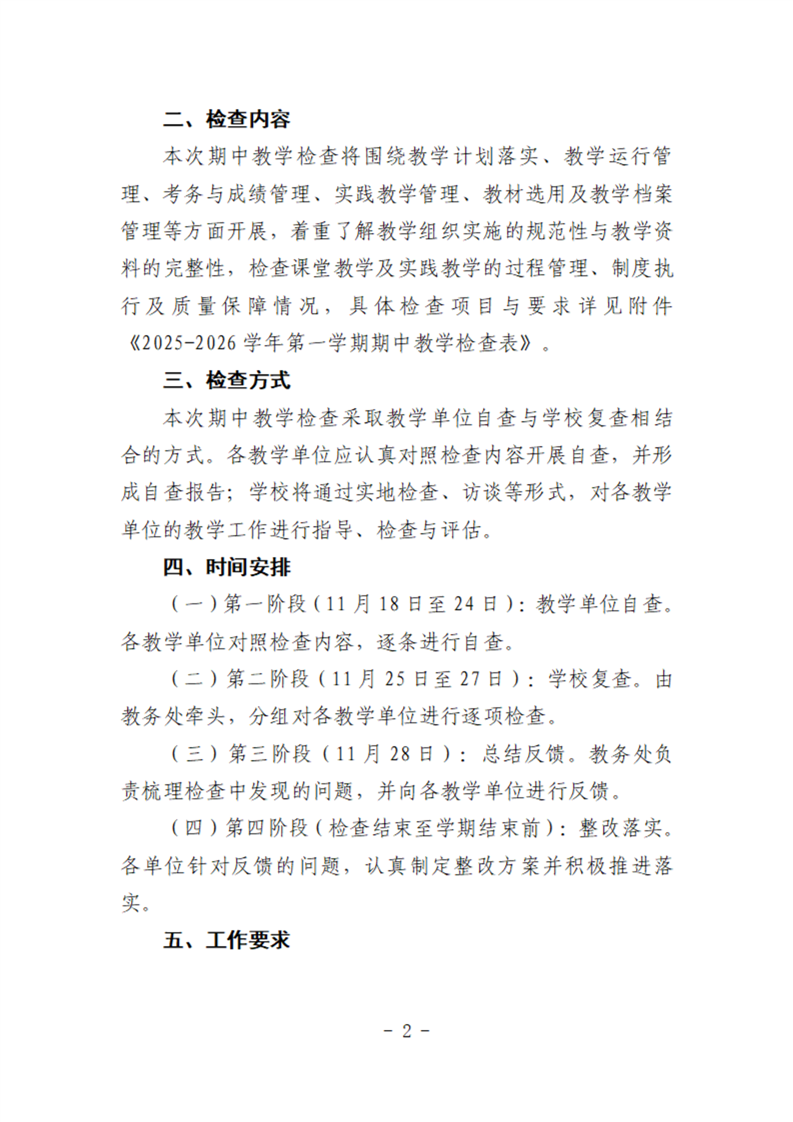 关于开展2025-2026学年第一学期期中教学检查的通知