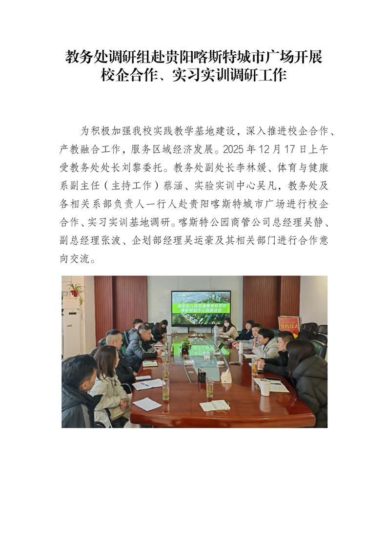 教务处调研组赴贵阳喀斯特城市广场开展校企合作、实习实训调研工作