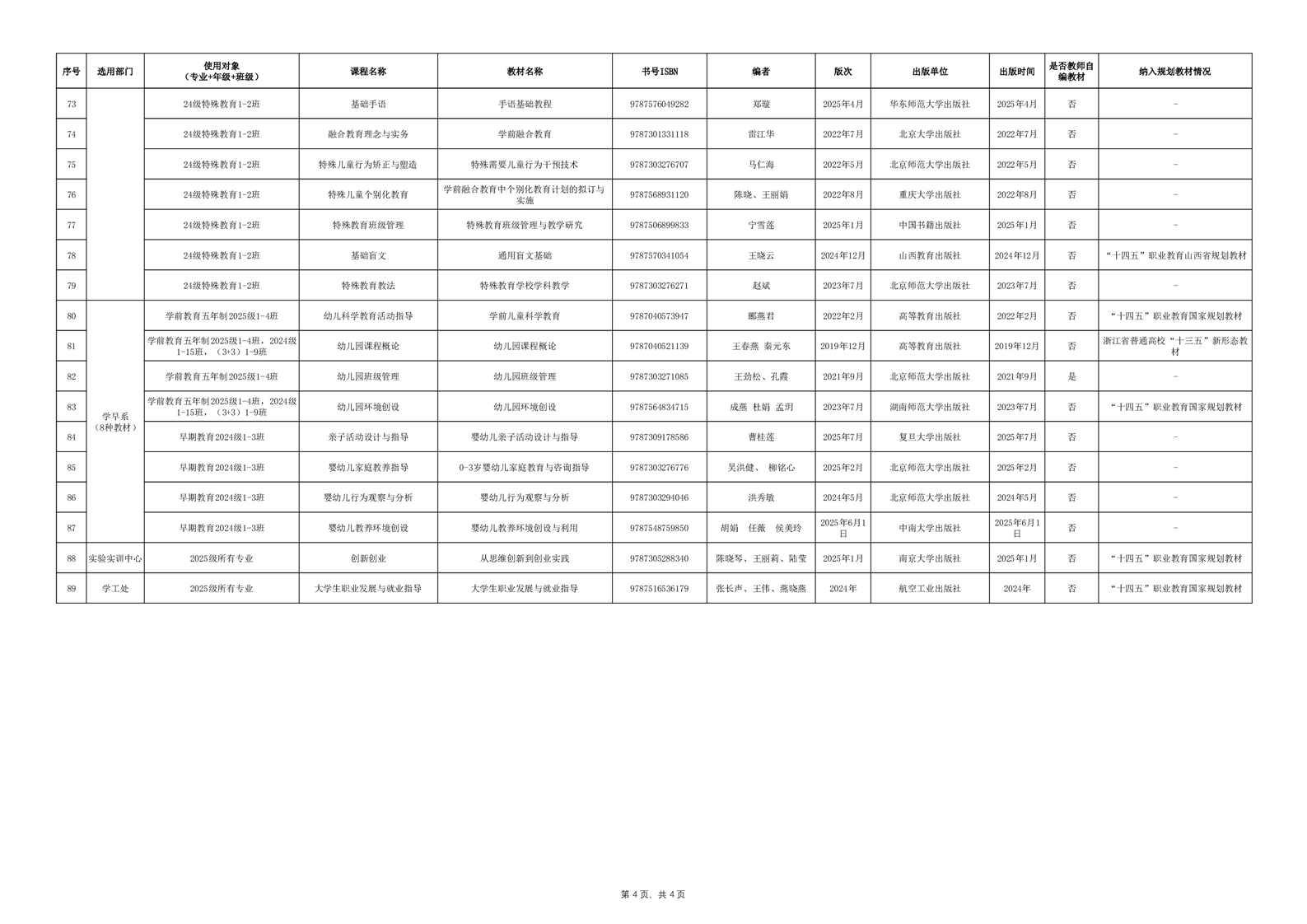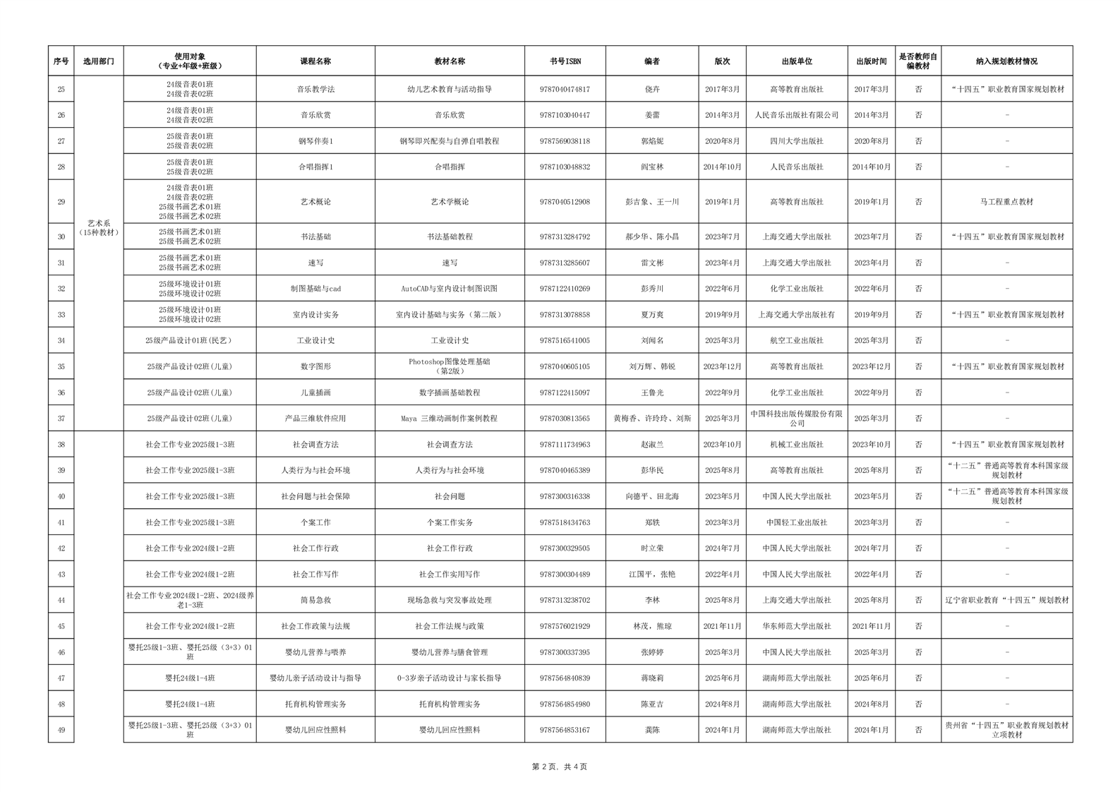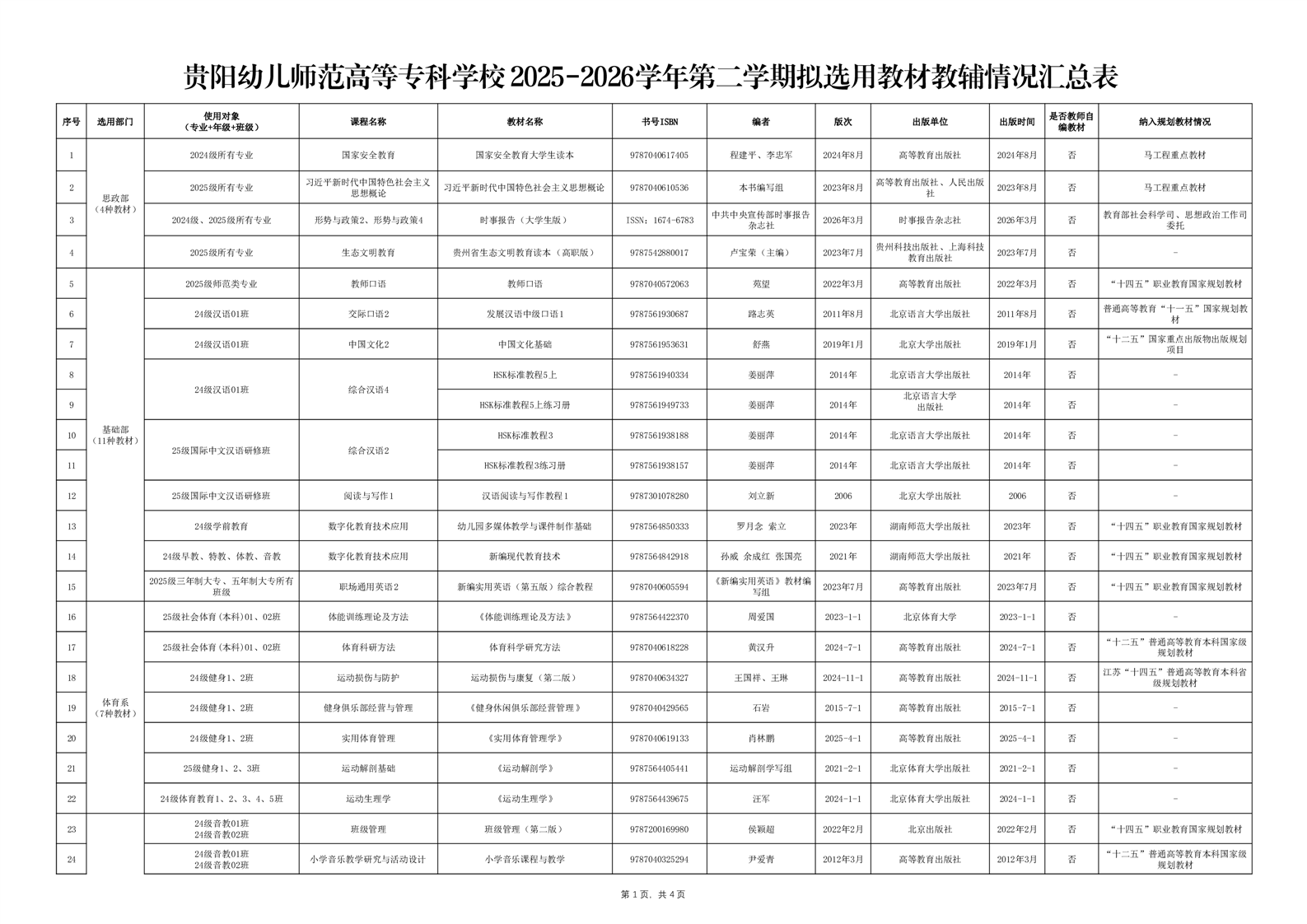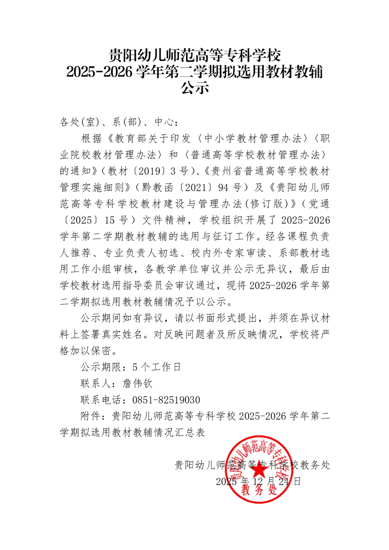 贵阳幼儿师范高等专科学校2025-2026学年第二学期拟选用教材教辅的公示