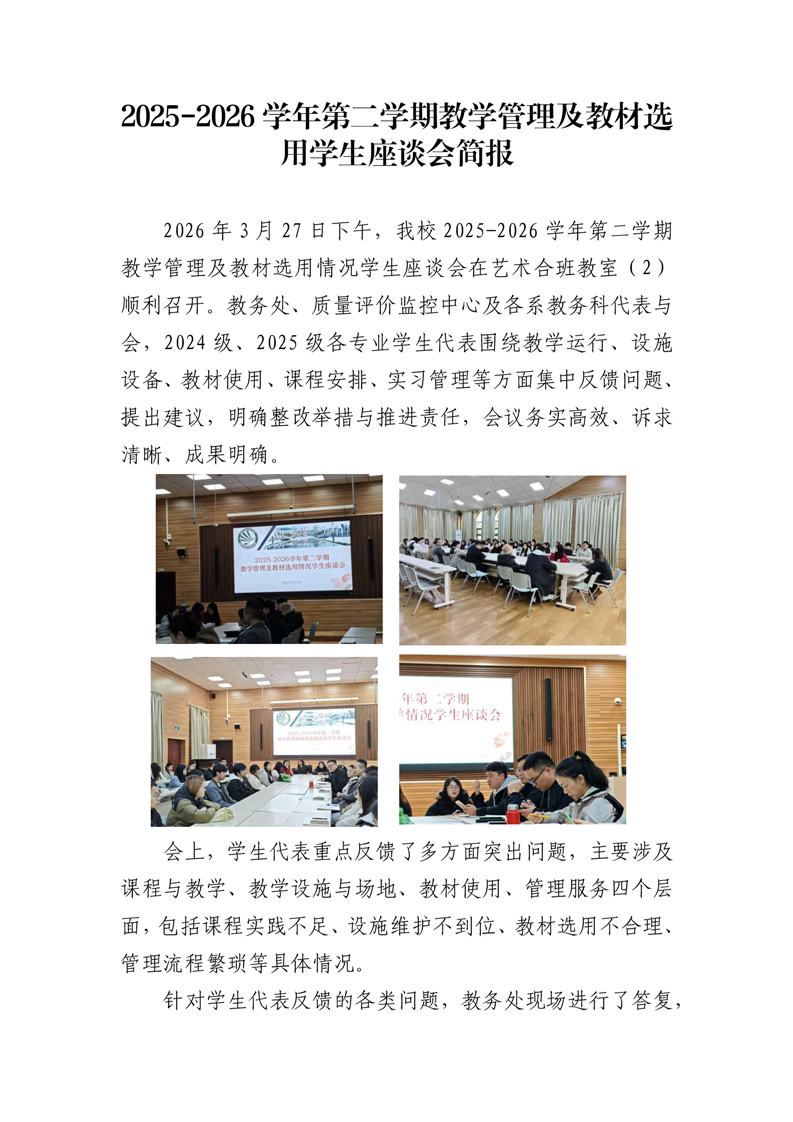 2025-2026学年第二学期教学管理及教材选用学生座谈会顺利召开